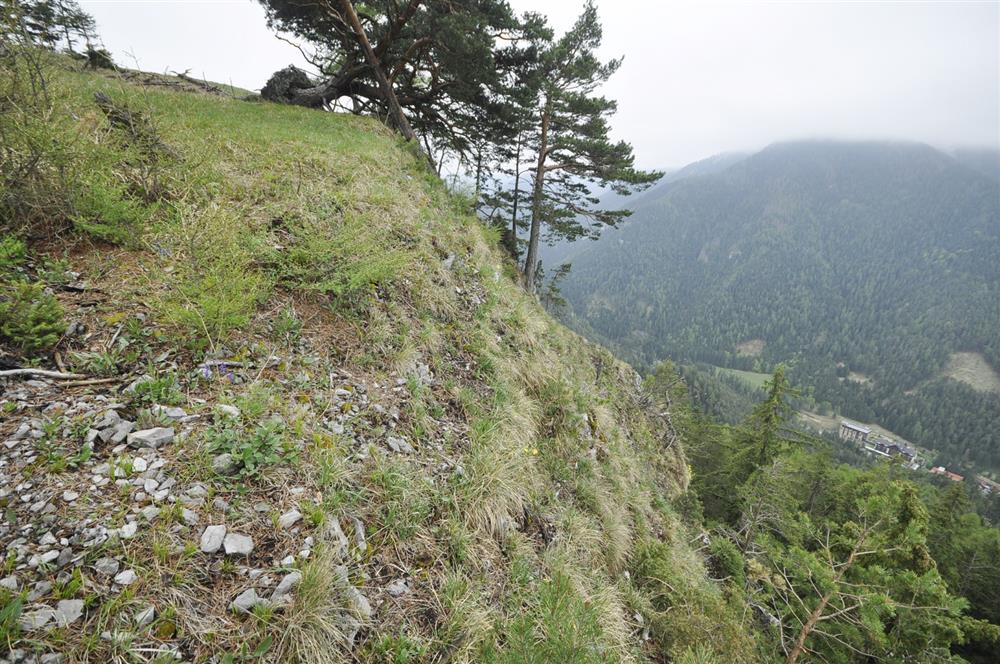 Reliktné boriny v mozaike s porastami Sesleria albicans