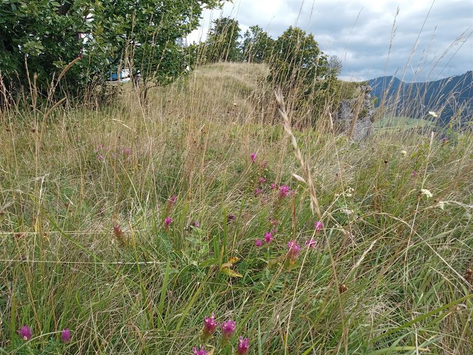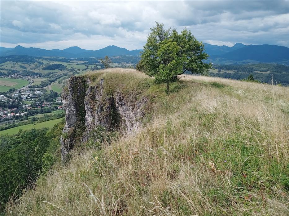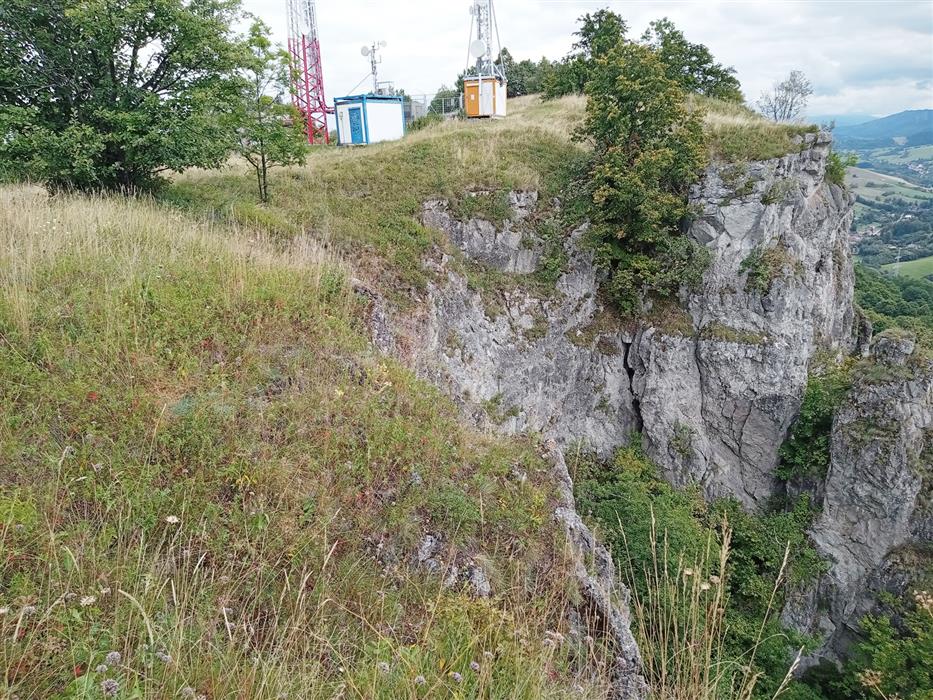 Úzky pás na hrane skalných vápencových brál osídľuje mozaika suchomilných biotopov