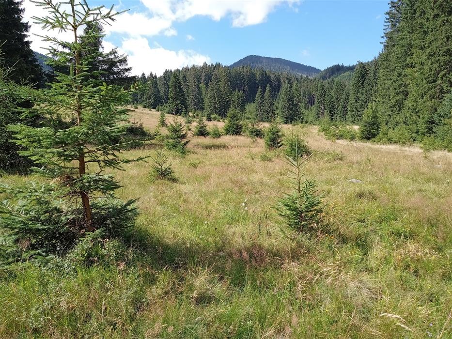 Bývalý pasienok so solitérnymi smrekmi v bylinnom poschodí s dominanciou Nardus stricta